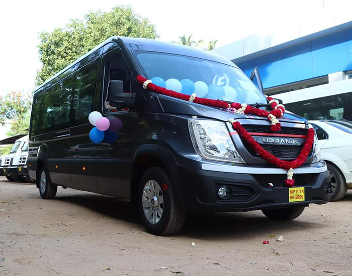 The 17-seater Urbania is a modern and spacious vehicle, perfect for group travel with a touch of style and comfort. Equipped with ergonomic seating, air conditioning, and a sleek design, it ensures a smooth and enjoyable ride—ideal for corporate trips, family tours, and special events across Gujarat.